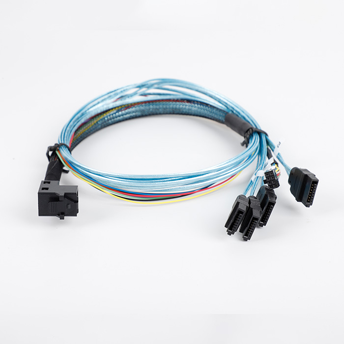 產(chǎn)品規(guī)格:MINI SAS HD 4I SFF 8643 下彎 TO SATA 7P/F帶彈片*4+杜邦HSG;鍍錫銅,成型工藝;支持熱插拔